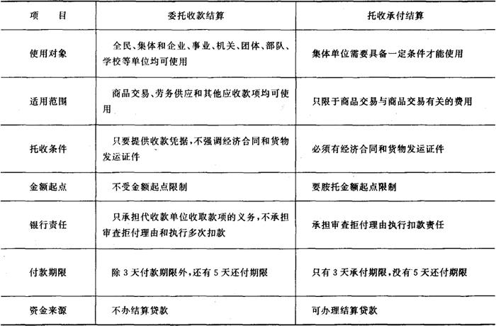 采用托收承付结算方式,为维护购销双方的正当权益,应做到两点: ❶ 销货单位应按经济合同规定的时间、数量与商品规格发货。办理托收时,应向银行提交经济合同与发运商品的证件。经济合同是企业间进行协作、履行责任、共同保证完成某项经济任务的依据。发运商品的证件,是证明商品已从销货单位发出的凭证,也是银行办理托收承付结算的重要依据。 ❷ 购货单位接到银行转来的承付通知后,应在承付期内及时审查单证或验收货物,并及时安排资金,保证按期付款。购货单位在承付货款时,通常可能出现三种情况:一是按期付款。企业结算帐户上有足够承付货款的资金,在承付期内也未向银行提出异议,承付期满后,银行主动将款项从付款单位帐户付出。二是延期付款。这是指付款单位在承付期满时,虽同意付款,但帐户上资金不足,无法如期划转款项,形成延期付款。延付金额按每日万分之三计收延付滞纳金。三是拒付货款。即购货单位对托收的商品拒绝付款。拒付意味著购销双方发生经济纠纷,拒付必须要有充足的理由。发生拒付后,由购销双方协商解决。购货单位不得无理拒付,对拒付货款的商品不准动用,并负责妥善保管,如发现动用,银行应代收款单位扣收货款。 采用托收承付结算方式,有利于巩固经济合同制,在正常情况下,有利于加速企业资金周转,结算手续比较严密和简便。它的缺点在于容易形成拖欠货款的现象。 (2)汇兑结算方式 汇兑结算方式,是付款单位委托开户银行将款项汇给外地收款单位或个人的一种结算方式。它适用于异地各单位的资金调拨,交易货款,采购资金,清理旧欠,往来款项,差旅费以及邮局私人汇款限额以上的私人款项等。 汇兑结算分为信汇与电汇两种,由付款单位自选。汇兑结算方式手续简便,收付双方事先不必订立合同,也不限于商品交易,各种货币收付都可运用,同时划拨迅速,有利于加速企业资金周转。汇兑结算方式的缺点是银行难以进行监督。 (3)异地委托收款结算方式 异地委托收款,是由收款单位向银行提供收款依据,委托银行向异地付款单位收取款项的结算方式。这种结算方式,能够适应多种经济形式的需要,使用范围广泛,便利收款单位主动收取款项。 委托收款结算,银行不承担审查拒付理由,不代收款单位分次扣收款项,也不办理结算贷款。异地委托收款结算与异地托收承付结算相比,两者在做法、要求上的具体差别如下表: