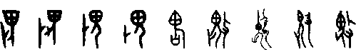 [甲骨][金文][小篆] 《說文》: , 惡也。 从甶、虎省。鬼頭而虎爪,可畏也。,古文省。 (九篇上)巫師戴面具扮鬼且持兵器之象,其威力更高,令人畏怕。