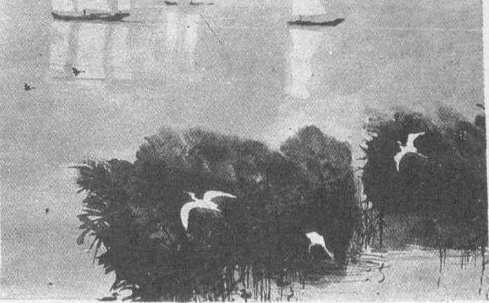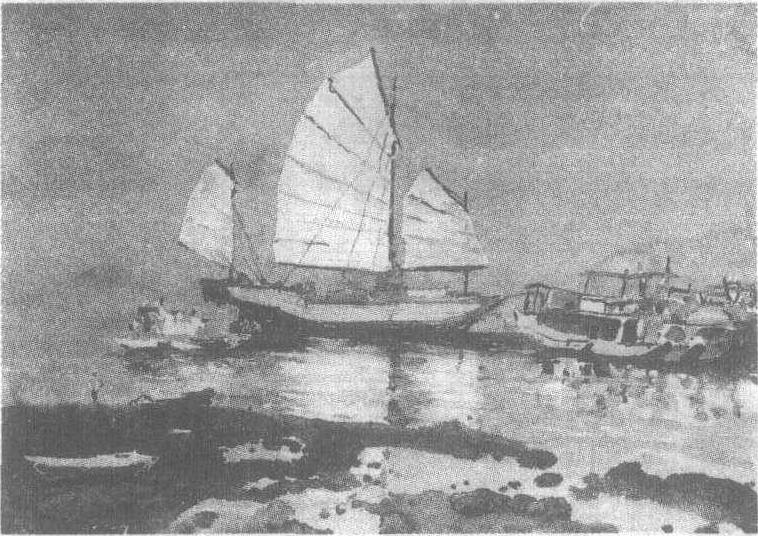 ❷橡胶液(橡胶树脂也可用补自行车带的橡胶液代用)留白:将橡胶液涂在留白处,晾干后着色,待画面完成后用橡皮膏贴于胶膜处,轻轻按压后揭起,或用橡皮轻轻擦掉胶膜。便呈现清晰的白色。