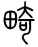 【提示】田,中间一横宋体与左右两边相接,楷体与左右两边相离。 右上是 ,大位于字上时,捺改点。 △畸jī13画 田部 (1) 不规则;不正常的: ~变|~形(1. 生物体某部分发育不正常,如“脊柱畸形”。 2. 社会现象反常,事物发展不均衡、不正常,如“畸形繁荣”)。 (2) 偏: ~重~轻(偏重偏轻,不合常规)。 (3) 零头;余数: ~零|~数。 畸 ☚ 疇 畮 ☛ 畸jī上古形声字。从田,奇声。本指残田,即不方正、不规则的田。引申指不规则的,不正常的。如:畸形。又引申为偏。如:畸轻畸重。又引申为零余的数目。如:畸零。 畸★常◎常