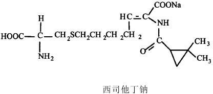 | 释义 | 伊米配能-西司他丁钠 【别名】:泰宁 【化学名称】伊米配能:(+)-(5R,6S)-3-[[2-(亚氨甲基氨基)乙基]硫]-6-[(R)-1-羟基乙基]-7-氧代-氮杂二环[3,2,0]庚-2-烯-2-羧酸-水化合物;西司他丁钠:(+)-(Z)-7-[[(R)-2-氨基-2-羧基乙基]硫]-2-[(S)-2,2-二甲基环丙烷羧酰胺基]-2-庚烯酸钠 【化学结构】