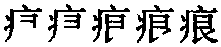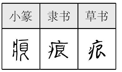 hén形声,从疒,艮(ɡèn)声,本义为伤疤,引申为物体或事物留下的印迹。 |