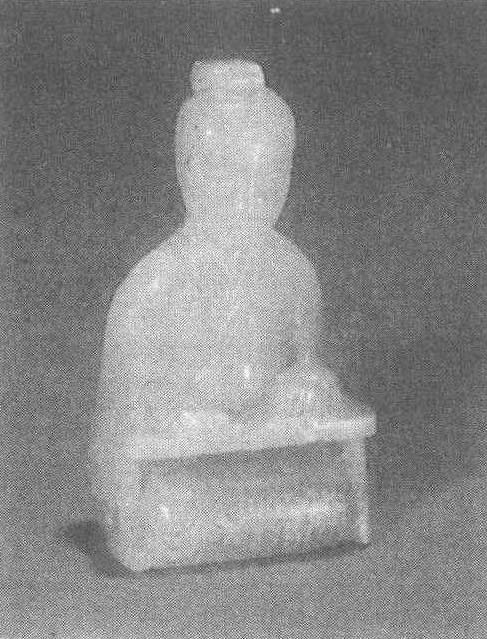 | 释义 | 白玉人 白玉人西汉早期。高5.4厘米。1968年河北省满城县中山靖王刘胜墓出土。河北省文物研究所藏。玉料为白玉,晶莹温润,局部有浸蚀。圆雕而成,面形椭圆,粗眉凤眼,鼻梁高直,表情端庄宁静。头戴小冠,发拢于脑后,穿宽袖左衽长衫,腰扎格纹带,正襟危坐于几旁,双手置于几上。底阴刻隶书5行10字“维古玉人王公延十九年”。刘胜见“镂雕双螭龙纹玉璧”条目。