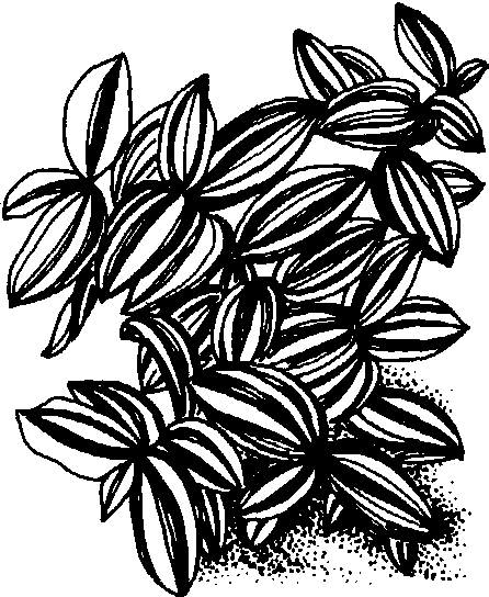 白花紫露草wandering jewTradescantia fluminensis,别名淡竹叶、白花紫鸭跖草。鸭跖草科鸭跖草属多年生常绿草本植物。染色体数2n=60,茎匍匐,带紫红色晕,节处膨大,贴地的茎节上生根。叶互生,长椭圆形,先端尖,长约4cm,有短柄,表面绿色,具白色条纹,有光泽,光线不足时,叶片变为绿色。伞形花序。花小,白色。有2枚阔披针形苞片。花期夏秋。有斑叶变种(var. variegata),叶上有黄色和白色斑纹。原产巴西中部、乌拉圭和巴拉圭。喜温暖、湿润、耐半阴。扦插法繁殖。盆土以壤土为宜,应经常保持土壤湿润,并施稀薄液肥;夏日宜适当遮荫,防烈日曝晒。白花紫露草宜盆栽观赏,其植株铺散,叶色美观,是书橱、几架的良好装饰植物。夏季又可作为吊挂廊下的观叶花卉。