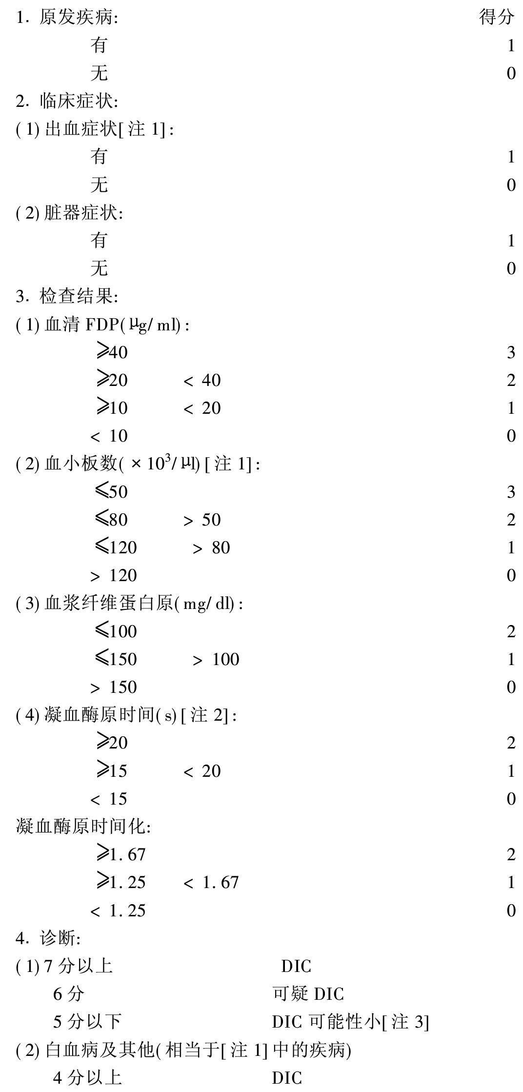 [注3]在辅助诊断中,满两项以上可诊断DIC。