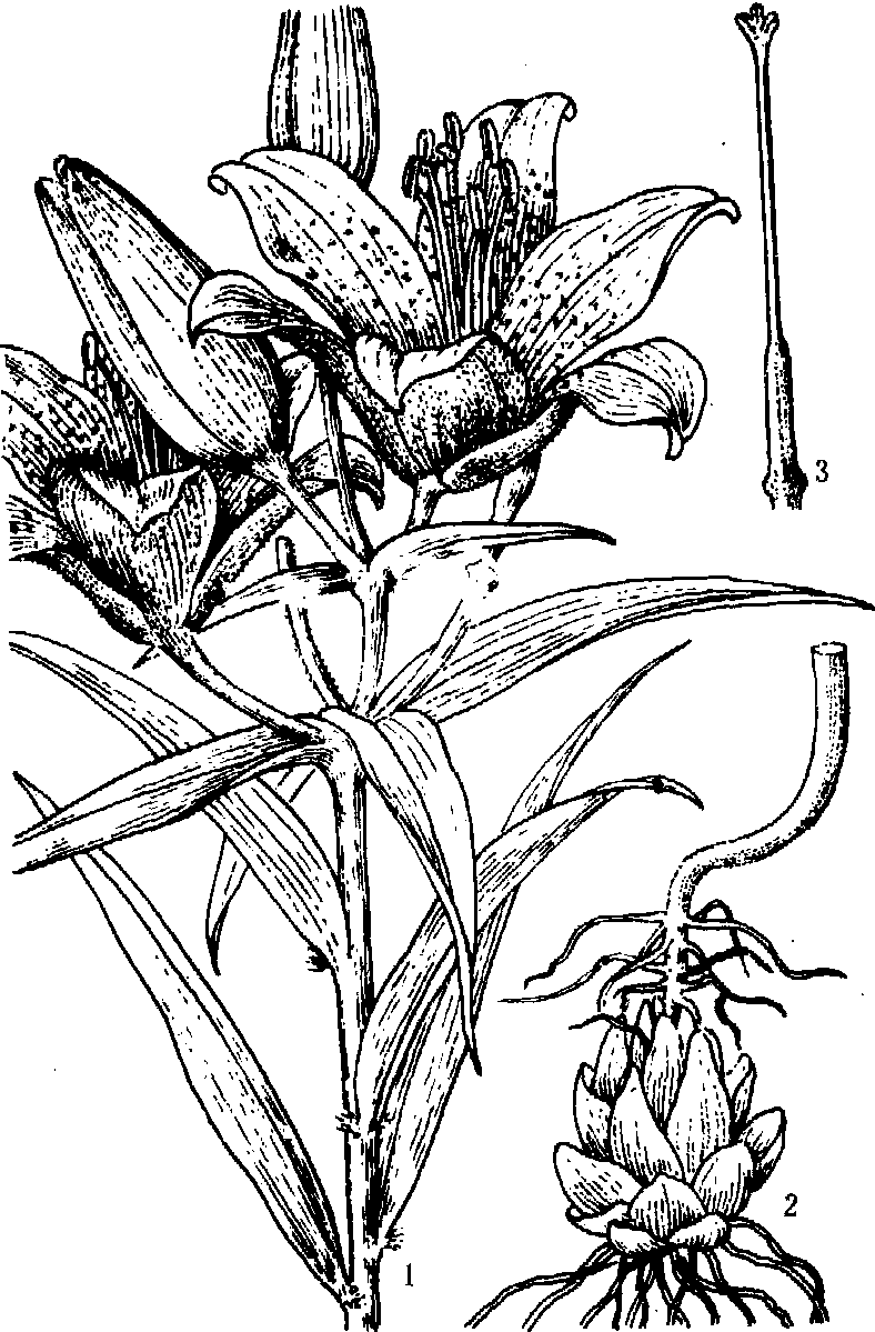 图60 百合科花图式 ☚ 禾本科 香蒲 ☛ 百合科 百合科Baiheke被子植物门。单子叶植物纲的一科。通常为多年生草本,很少为木本(龙血树)或具卷须藤本,具鳞茎或根状茎。叶基生或茎生,茎生叶通常互生,少数对生或轮生,极少数种类退化成鳞片状(如天冬属)。花序各式,通常为总状、圆锥状或伞形花序;花两性,花被片6(少数4),两轮排列,成花瓣状,分离或合生(铃兰),雄蕊6(少数4,8)子房上位,3室,中轴胎座。蒴果或浆果。全世界约240属,4 000种,广布各地。以温暖地区和热带为主。我国有60属,600种。广布全国各地。百合、郁金香、风信子、萱草、玉簪、文竹等多种为著名观赏植物;贝母、百合、黄精、玉竹、知母、铃兰、麦冬、藜芦等多种植物鳞茎、根状茎或全草可供药用;葱、洋葱、蒜、韭菜、石刁柏可作蔬菜或调味料。百合鳞茎可食用或提制淀粉。 ☚ 菠萝 葱 ☛ |