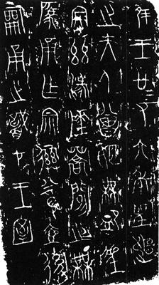 《会姬无卹壶》的书法比较有名,它旣是正体的大篆,又能适当地吸收虫书的某些长处,使线条载著流动的意緖,迴环蜿蜒地分割空间,在极爲有限的天地裏,留下了令人激动的轨迹和耐人寻味的韵致。 很难说淸楚,作品爲什么分别加入了齐、楚书法的某些特点。也许是有意地兼收并蓄?不管怎样,作者以它的有效控制,使这些东西融合而不是跳蕩。所以,作品仍然以统一的格调,向人们显示它那种桀骜不驯的态势和精神。 |