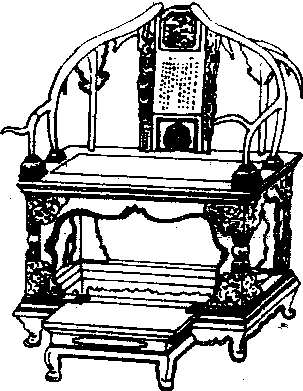 满族传世文物。角木质,通高119. 5厘米,椅高57厘米,靠背高93. 2厘米。座木质,长方形,座心为藤条编织而成。椅靠为一具俯扣的巨形鹿角,未加雕琢,顺其天工。角干计12叉,后4叉与椅座相交为支柱,向前伸张2叉作扶手,余者向后驰张,自然又美观。椅背正中为长方形靠板,上下各有透雕花纹,正中阳刻乾隆皇帝御制诗1首,中有“弯弓曾逐鹿,制器拟乘龙”句,盛赞祖宗的骑射武功。一是椅为皇太极亲射糜鹿之角制成,新奇别致,独具匠心。为满族长于狩猎骑射的实物见证。