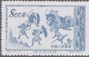 | 释义 | 伟大的祖国(第三组):敦煌壁画 发行日期:1953年9月1日 齿孔度数:14 印刷版别:雕刻版 图幅:37.5×22 全张枚数:96(8×12) 设计者:孙传哲、夏中汉 雕刻者:吴彭越、刘国桐、李曼曾、林文艺 印刷:北京人民印刷厂营业分厂
