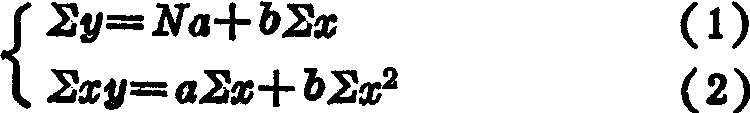 ∑y·∑x=Na·∑x+bΣx·∑x ∑xy·N=a∑x·N+b∑x2·N 解以上两个方程式得