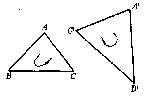 图2 若某相似变换把平面上的三角形变为与它同向的三角形,则称这个相似变换为正向相似变换(图1),反之称为反向相似变换(图2). 当k=1时,相似变换为合同变换,所以合同变换可以看作相似变换的特殊情况. ☚ 合同变换的性质 相似变换的性质 ☛ 相似变换similitude transformation |