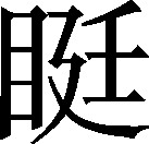 低目皃。例:这女子羞脸大,人~,见了生人头都不敢抬。❍ 这女子胆小爱面子,性格又~,见了生人都不敢说话。也通“眠娗”、“眠”。《集韵》:“眠瞋,低目皃。”《辞源》:“眠,即腼腆,不开通之皃。”