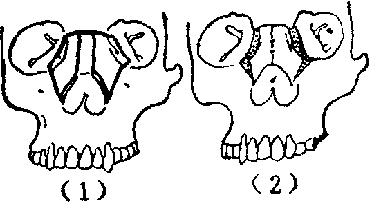 图5 保留两侧额骨尖角的经颅内颅面整形术 ☚ 先天性颜面裂 Apert综合征 ☛ |