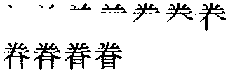 ❹ 如花美眷|三亲六眷 眷 金文; 篆juàn[目(意符)+龹(聲符)→眷(《説文》:“眷,顧也。從目,龹聲。《詩》曰:‘乃眷西顧。’”顧念,愛戀〈眷念、眷戀、眷顧〉。)] 《詩經·大雅·皇矣》:“乃眷西顧。”(於是回頭朝西看。) 魏滋伯《西湖月老祠楹聯》:“願天下有情人,都成眷屬。” 眷*睠; juàn(11画)