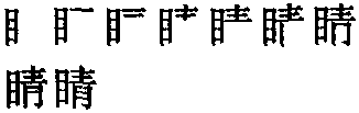 【提示】右下是⺝, 起笔是竖,不是竖撇; 旧字形是円,里面是一竖、一横;月,单独位于字下时,起笔竖撇改竖。 ⺝和目, 中间两横宋体与左右两边相接,楷体与左边相接,与右边相离。 *睛jīng13画 目部 眼珠: 定~一看|画龙点~|目不转~|火眼金~。 睛jīng古代本作“精”。中古造睛字。从目,青声。指眼珠,眼球。分化字。如:目不转睛|画龙点睛。 睛★常◎常jīnɡ形声,从目,青声,眼珠。 |
