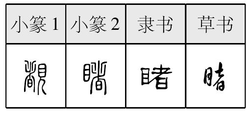 ❹惨不忍睹|耳闻目睹|目不忍睹|目所未睹|视若无睹|熟视无睹|有目共睹 睹 金文; 篆dǔ[貝(意符) + 者(聲符)→睹(《説文》:“睹,見也。從目者聲。覩,古文從見。”睹:看見〈目睹、先睹爲快、耳聞目睹、熟視無睹、有目共睹、睹物思人〉。)] 《中庸·第一章》:“是故君子戒慎乎其所不睹,恐懼乎其所不聞。”(所以君子在人看不到的地方也持謹慎;在别人聽不到的地方也懼怕而小心。) [西漢] 司馬遷 《史記·孝武本紀》:“自此之後,方士言祠神者彌衆,然其效可睹矣。”(從此以後,道士談論神仙的事就多了起來,可是其效果就可想而見了。) 睹*覩dǔ(13画)