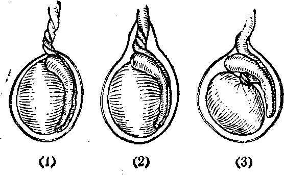 睾丸扭转 精索扭转可发生于三个部位(图):
