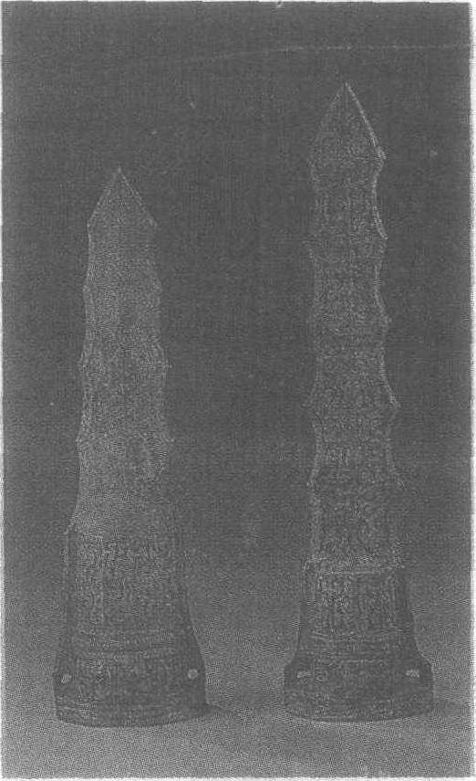 | 释义 | 矛状铜车 矛状铜车(2件)战国·曾。一件通长37.5厘米。一件通长42厘米。1978年夏湖北省随州市擂鼓墩曾侯乙墓出土。湖北省博物馆藏。曾侯乙墓出土车计有76件,均集中于北室,有错金纹饰的,个别的还有铭文。矛状车仅此二件,形制较特殊,矛的双刃分别制成四道、五道连弧刃,锋均很锐利。,是古代车上的部件,位于车轴外端,俗称车轴头,一般为长筒形,末小本大,空端插入轴内,并配合“辖”使用。矛,则是兵器,刺兵的一种,具一锋二刃。、矛一体的车当属战车特制。