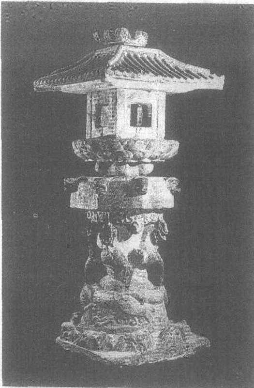 | 释义 | 石灯 石灯唐。高193厘米。原存陕西省乾县石牛寺,1962年移入陕西省博物馆藏。为供养灯。计九层:连绵起伏的群山座上,支承着由四条纠缠虬曲,盘旋而上的蟠龙构成的灯身;矩形灯室和近似攒尖顶的灯盖座落在一朵盛开的莲花上,莲与灯身则以多角石台和花状物相接。此灯造型优美,层次分明,错落有致,是一件独具匠心的艺术佳作。