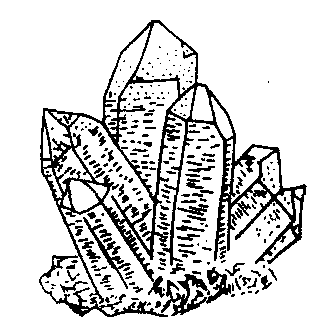 ❹晶簇,由生长在岩石裂隙或空洞中的许多单晶体所组成的簇状集合体。它们一端固着于共同基底上,另一端自由发育而且有良好的晶形。如石英晶簇(如图)。