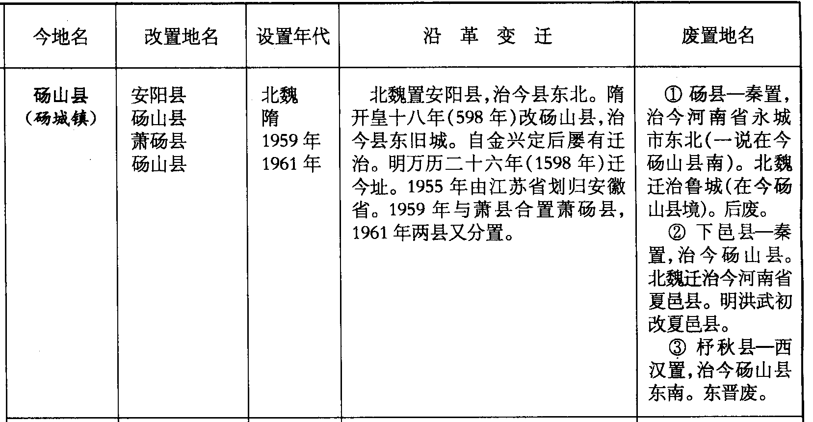 ❶砀县—秦置,治今河南省永城市东北(一说在今砀山县南)。北魏迁治鲁城(在今砀山县境)。后废。