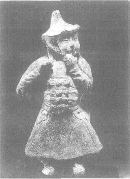 1973年在河南焦作市郊一座金代砖墓的上部发现了一组乐童俑,他们载歌载舞,声情并茂,宛若 一支欢快的儿童演出队。击鼓舞蹈俑、吹笛俑便是这个演出队的两位可爱的小演员。