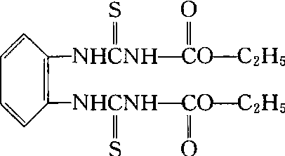 硫菌灵thiophanate见甲基硫菌灵。 硫菌灵thiophanate又名托布津。苯类杀菌剂。化学名称:1,2-二-(3-乙氧甲酰-2-硫代脲基)苯。化学结构式如下。原药为白色片状结晶,难溶于水,微溶于有机溶剂,在丙酮、乙醇等溶剂中重结晶,化学性质稳定,遇碱性水溶液形成不稳定盐。1969年由日本曹达公司推广。为广谱内吸性杀菌剂。用于种子处理,叶面喷洒,浸果处理等防治多种作物病害,与多菌灵有相同的抗菌谱。同样对由交链孢菌、卵菌及病原细菌引起的病害无效。兼有杀螨卵作用。对植物安全,对人畜低毒。小鼠急性口服LD50>15 000 mg/kg,以1%液处理兔(♂)皮肤无任何症状。