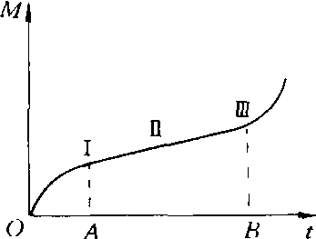 磨损规律wear law在摩擦过程中,材料的磨损量相对于摩擦行程(或时间)的函数关系。磨损规律通常用磨损曲线表示。图示为一般机器零件的自然磨损规律。图的纵坐标为磨损增量,横坐标为行程(或时间)。其中曲线“Ⅰ”为磨合阶段,磨损随时间增长较快,并逐渐趋于稳定;曲线“Ⅱ”为正常工作阶段,磨损增长率接近为常量;曲线“Ⅲ”为剧烈(事故)磨损阶段,磨损增长率越来越大,以至在短期内将导致故障发生。人们掌握零件(机器)的磨损规律,将有利于设计、制造、使用及维修等工作。