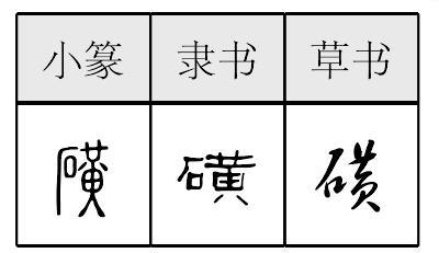 【提示】右上是龷, 旧字形是 。 中间是由, 不要错写成田。由,中间一横宋体与左右两边相接,楷体与左右两边相离。 磺huáng《说文》说磺,铜铁朴石也。从石,黄声。读若穬( kuàng,又gǒng,有芒的谷物,指稻麦)。现通作“矿”(礦)。中古用“磺”为石名。从石,黄声。读huáng。近代以后用于“硫磺”,也就是硝磺,可制火药等。 磺★规◎常
