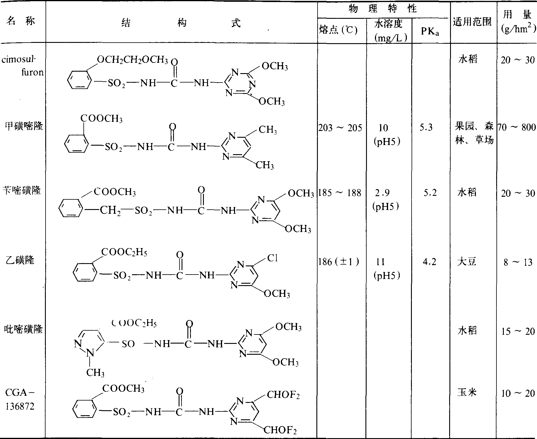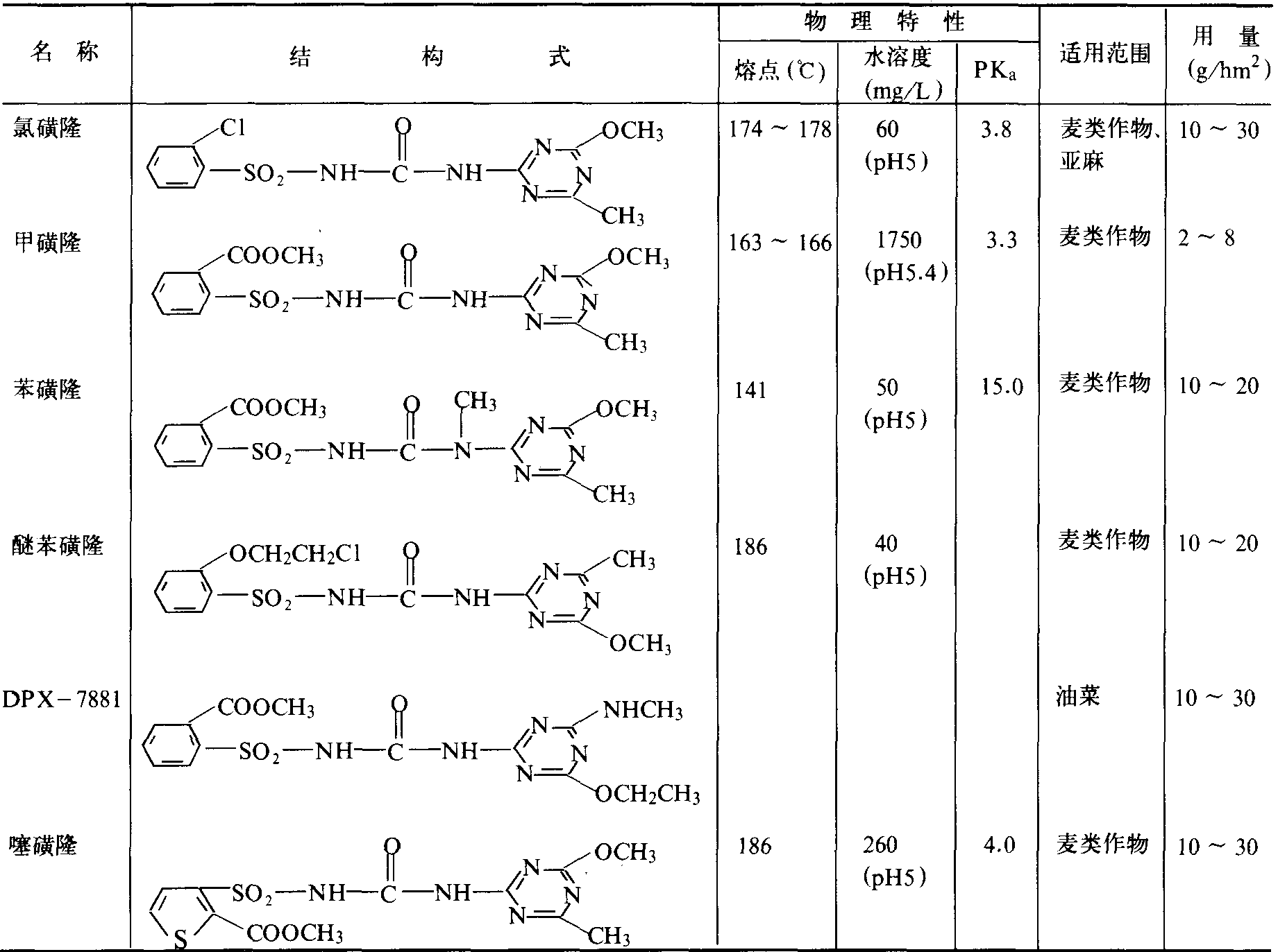 | 字词 | 磺酰脲除草剂 | ||||||||
