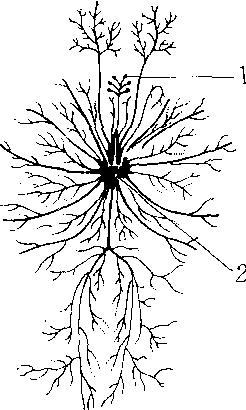 整合 神经系统的重要机能,即神经系统或其一部分能将瞬间输入信号转变成输出信号,而后者是前者的函数。突触整合是整合的基本形式,神经元通过对信息(即刺激信号)的编码和译码,能将信息准确地接收下来并传递出去。突触整合最常见的方式是时间和空间的总合,突触前膜除一对一地与突触后膜相联系外,还有一对多及多对一的联系方式。当神经末梢传来第一次冲动所释放的递质产生的突触后电位振幅过小,不能使突触后神经元兴奋时,如果瞬间又从突触前神经元连接传来第二次冲动,其所产生的第二个突触后电位到达时第一个尚未完全衰减,二者叠加则电位增大,达到阈限即可使突触后神经元兴奋,此即谓时间总合;若从两个以上不同的突触前膜传来的冲动同时到达一处突触后膜,由此引起突触后神经元的兴奋称谓空间总合; 若兴奋性和抑制性突触的冲动同时到达,则按算术加减原则进行整合,当两者相等则相互抵消,不引起突触后神经元的电位变化。 传入神经将外界的刺激信号以脉冲(即动作电位)形式传给中枢神经系统,再经传出神经将指令信息传到效应器。信息脉冲流经的每个神经元都有识别和发放信息脉冲的过程,亦即都有一个编码和译码的过程。编译码的重要方式之一,是将不同的脉冲信号引向不同的线路传导,这种现象称为标记线路编码。 神经分泌作用 中枢神经系统内有一些能分泌某些特定化合物的细胞,即神经分泌细胞,其分泌物统称神经激素,用以控制或激活某些内分泌腺。神经分泌物是神经系统与内分泌系统间的信息联系介质。 神经系统nervous system动物体内由神经组织构成、借以对体内和体外环境条件变化作出反应的器官系统。神经系统联络于感受器与效应器之间,通过对神经冲动的传导并进行分析综合,调控动物体各部分的功能活动。感应性和传导性是原生质的普遍特性,有些单细胞动物并形成了具有感受和传导作用的细胞器,但至神经细胞其感应性和传导性达到高度发展,成为神经系统的基本结构和功能单位,称神经元(见神经组织)。由于分工和特化,能精确而敏锐接受各种不同刺激,并将其转变为膜电位变化的神经细胞或其一部分,形成感受器。而对来自神经系统的冲动以某种方式产生反应的细胞或器官,则构成效应器。有的效应器兼有感受器作用,如低等动物的刺细胞(见腔肠动物)。单细胞动物的效应器如喇叭虫和钟形虫细胞外质中的肌丝,纤毛虫和鞭毛虫的运动纤毛和鞭毛;高等动物由器官构成的效应器有肌肉、腺体及其他能运动的装置。动物在进化过程中,神经系统的组成和构造也随功能而复杂化,其影响因素主要有三: ❶感觉细胞的分化和集中,形成了丰富的、具有各自特定功能的感受器和感觉器官;