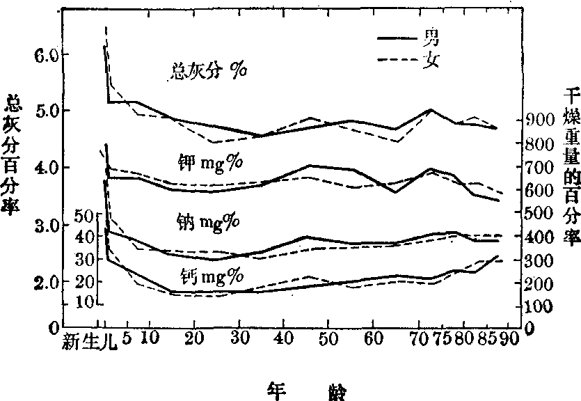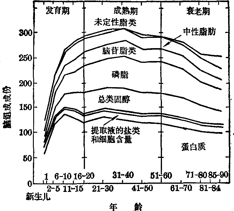 图3 脑的各种组成成分随年龄的变化(引自Himwich HE,1956)