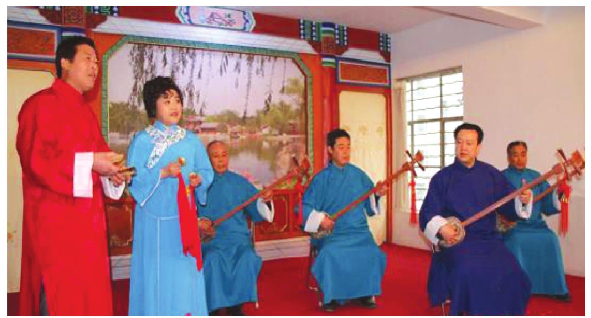 | 释义 | 秦安小曲 秦安小曲曲艺。国家非物质文化遗产。秦安小曲分“花调”和“老调”两大类型。“花调”的词曲格式及调式调性等方面都类似眉户调。清末由陕西传入秦安。“老调”的词曲格式、演奏演唱形式以及调式调性和流传情况,与“花调”不同,“老调”的词曲结构严谨,唱词是长短句体。每个曲牌的字数,每句的字数都形成一定的格式,每段不同内容的唱词都得按固有的曲调格式填词。其曲调节奏顿挫有致,旋律迂回曲折,音域宽广,色彩明朗,典雅细腻,委婉悠扬。秦安小曲共有 40 多个曲牌,主要有“越调”“越尾”“穿字越调”“四六越调”“背宫”“背尾”“单背宫”“三道蔓”“大五更”(雁落沙滩)“小五更”“降夜香”“软环儿”(跌落)“三字头”“上暑落”“下暑落”“诗篇”“荡调”“岔儿”“混江龙”“莲花”“双莲花”“道音”“禅音”“勾牌子”“哭调勾牌子”“乐一乐”“男寡夫”“琼竹调”“赶船调”“马头调”“进兰房”“一串铃”“岗调”“太平年”“割韭菜”“十里亭”“赏月光”“满江红”等曲牌。曲牌分两大类:一类是音乐较短的中小型曲牌(艺人习惯把这类曲牌叫“小调”曲牌),已整理 38 个;另一类是音乐较长的大型曲牌(艺人习惯称此类曲牌为“大调”曲牌)。大型曲牌只有勾、平、当、挂四大曲牌,已经很少有人会唱,仅存“赏月光”“满江红”。一个曲牌一般由一人演唱,可从头唱到尾,也可一人唱一段,另外一个伴奏人接着唱另外一段,没有多人合唱的演唱形式。演唱时演唱者手持“摔子”敲击节奏,只唱无白。唱词内容有对人物登场前的交代,场景、人物外貌或其情绪的描述,有登场人物的对话,有人物内心的独白,有对某一故事的叙述或对事件的评述,等等。秦安小曲除演唱者敲击“摔子”伴奏外,通常有一人弹三弦随腔伴奏,后来又增加了板胡、二胡等乐器。
