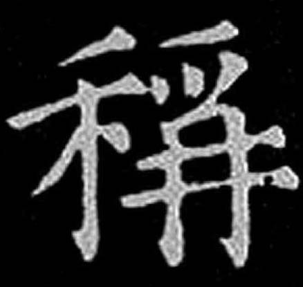 嘉祐銅則 稱B751 稱chèn,chēngC114 稱chēng,chènC120 〖稱〗 (一)粵 cing3〔情【陰去】〕普 chēng 稱量,衡量。許慎《說文解字》:「〜,銓也。」(銓【粵 cyun4〔全〕普 quán】:衡量輕重。)班固《漢書.枚乘傳》:「夫銖銖而〜之,至石必差。」(銖、石:皆重量單位。銖:一兩的二十四分之一。石【粵daam3〔對鑒切〕普 dàn】:一百二十斤。)(二)粵 cing3〔情【陰去】〕普 chèng 通「秤」,稱量輕重的器具,這個意思後來被寫成「秤」。《淮南子.時則訓》:「角鬥~。」(三)粵 cing1〔蜻〕普 chēng ❶ 稱讚,稱許。諸葛亮《出師表》:「先帝〜之曰能。」❷ 稱述,述說。李華《弔古戰場文》:「古〜戎、夏,不抗王師。」(戎:泛指外族。夏:漢族,指中原地區。) ❸ 稱作,號稱,有成語「〜兄道弟」。宋濂《杜環小傳》:「雖古所〜義烈之士何以過。」(何以過:比不上。) ❹ 聲稱。司馬遷《史記.廉頗藺相如列傳》:「相如每朝時,常〜病,不欲與廉頗爭列。」 ❺呼喚。劉向《戰國策.齊策四》:「因燒其券,民〜萬歲。」(券:借據。) ❻ 稱著,著名。韓愈《雜說(四)》:「不以千里〜也。」 (四)粵 cing3〔情【陰去】〕普 chèn 相稱,相配,有成語「衣不~身」。韓非《韓非子.定法》:「官爵之遷與斬首之功相〜也。」(遷:升遷。)《韓非子.五蠹》:「〜俗而行也。」稱稱(爯),甲骨文作 稱称, |