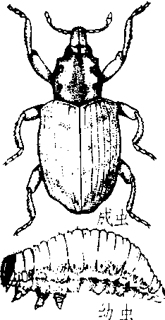 | 释义 | 稻水象甲rice water weevil取食水稻叶、根部的害虫,中国对外植物检疫对象之一。学名Lissorhoptrus oryzophilus Kuschel。鞘翅目,象虫科。原产美国东部。1800年首次在密西西比河流域发现。19世纪后半期,密西西比河流域的阿肯色、密西西比、路易斯安那、得克萨斯各州始栽水稻,此虫逐渐成为主要害虫。1959年在加利福尼亚州发现,并在水稻种植区扩展蔓延,受害范围达22个州。1972年传入多米尼加。1976年5月在日本爱知县首次发现,1982年蔓延到28个府县,并向东北方向扩展。加拿大、墨西哥、古巴、哥伦比亚、圭亚那等国及北非也有发生。主要寄主为水稻及禾本科、莎草科、灯心草科、鸭跖草科、马蔺科、泽泻科的杂草。成虫取食水稻嫩叶,在叶面形成I形长斑痕; 幼虫取食水稻根部,造成根系和分蘖减少。为害严重的稻株停止生长,下部叶片枯死,甚至整株死亡。一般减产10~20%,严重时减产50%。主要通过运载稻草、牧草、草坪植物、腐殖土、包装材料等作远距离传播。成虫飞翔或借助风力、水流等途径也能扩散。 稻水象甲American rice water weevilLissorhop-trus orysophilus Kuschel,又称稻根象。昆虫纲,鞘翅目,象甲科。中国对外植物检疫害虫。分布于美国、加拿大、墨西哥、圭亚那、多米尼加、哥伦比亚、古巴、日本、朝鲜、韩国以及北非。以为害水稻为主。成虫体长2.8~3.2 mm,体黑色被浓密的灰绿色鳞片,外貌为灰绿色。喙短阔,端部环绕灰白色刚毛。鞘翅不能盖住臀板,鞘翅上有6条纵纹。在美国一年2代。以成虫在田间杂草的基部越冬,卵多产于叶鞘浸水部分。成虫趋光,具单性生殖和两性生殖能力。幼虫群集为害。末龄幼虫在根部蛹室化蛹。对虫源地的稻草及其他禾本科杂草填充物宜严加检疫,以防传入。杀螟丹、残杀威为防治幼虫的主要农药。