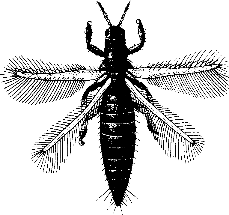 | 释义 | 稻蓟马rice thrips水稻等禾本科作物的刺吸害虫。学名Stenchaetothrips biformis (Bag-nall)。缨翅目,蓟马科。分布于亚洲、欧洲、南美洲。中国主要发生在江淮流域以南各省区。成、若虫刺吸为害水稻,并主要取食大麦、小麦、玉米及李氏禾、稗、看麦娘、马唐、千金子、野燕麦等的叶片。成虫体长1.0~1.3毫米,黑褐色。头近似正方形,触角7节,第三、四节上有叉状感觉锥; 单眼间鬃短,位于单眼三角形连线外缘;前胸背板后缘角有一对长鬃;前翅淡褐色。前脉鬃8~10根,其中端鬃3根,后脉鬃11~13根。雌虫腹部末端锥形,雄虫圆钝。卵长0.26毫米,肾形,淡黄色,后期出现红色眼点。若虫共4龄,1龄体长0.3~0.4毫米,乳白色,触角直伸前方。2龄体长0.6~1毫米,黄白至淡黄色,触角直伸头前方。3龄(又称“前蛹”)体长0.8~1.2毫米,淡黄色,触角向头的两侧伸展,单眼隐约可见,淡褐色,翅芽短,长达腹部第二节。4龄(“蛹”)体长0.8~1.3毫米,淡黄色,触角折向头与胸的背面;3个单眼明显,红褐色,翅芽伸及腹部第六至第七节(见图)。