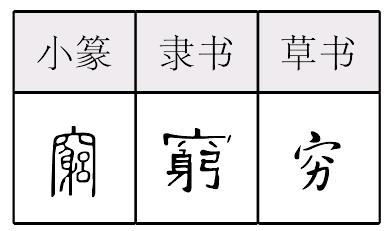 qiónɡ窮,形声,从穴,躬声,本义为时间或空间达到终点,完结,引申为阻塞不通、不得志、不显贵、寻根究源、副词(彻底、极端、胡乱地)等。元代俗字、《手头字》、《简体字表》、《简化字表》简作“穷”,据草书楷化。 【辨析】 穷/贫 见312页“贫”。 |