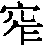 窄 金文;《説文》所無zhǎi[穴(意符) + 乍(聲符)→窄(橫的距離小,與寬相對〈狹窄、窄小、冤家路窄〉;心胸不開朗,氣量小〈心窄〉;生活不富裕〈日子過得挺窄〉。)] [唐] 白居易《題新昌所居》:“院窄難栽竹,牆高不見山。” 窄 zhǎi(10画)