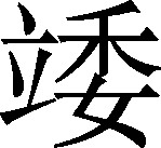 站立;弱立皃。例:人冷得~浑身打颤!❍ 身体弱有病,~站不住!《字汇》:“,弱立皃。”