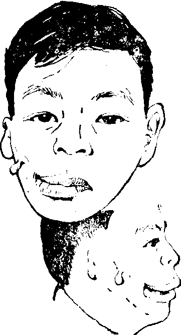 图1 右第一、二鳃裂综合征 整形手术治疗,如为骨胳的轻度畸形,行上颌骨、颧骨、下颌骨体部的外嵌植骨术后,即可获得较好的形态。移植骨可取自髂骨或肋骨,劈分后应用。骨骼的重度畸形,则需长、宽、厚的立体修复。因外嵌植骨法只能增加宽度和厚度,故还需在植骨前先行长度的延长,即上颌骨的横向截骨和下颌骨升支的纵向劈分截骨术,然后以健侧的上颌结节为轴向正常侧旋转, 使咬面恢复水平位。 旋转后,在上颌骨所出现的楔状缺损以骨块移植充填,下颌骨的空隙则以移植骨桥接,并可增加下颌部宽度; 下颌骨升支关节端缺失者,也可用移植骨替代修复(图2)。日后还需行下颌骨的颏部截骨并向前方和健侧推进的颏成形术,或恢复颞下颌关节活动的手术。