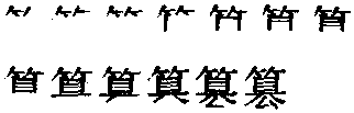【提示】目,中间两横宋体与两边相接,楷体与左边相接,与右边相离。下边是厶, 不是么; 厶, 2画, 是一笔,不是一撇、一横两笔。 *篡〔簒〕cuàn16画 竹部 (1) 臣下夺取君位。今指用非法手段夺取权力和地位: ~夺|~国|谋权~位。 (2) 以私意歪曲: ~改|~易。 篡篡cuàn上古形声字。从厶(私的本字),算声。过去有“厶”上误加一撇的,现规定为异体字。见《异体字表》。夺取,劫夺义。如封建社会官吏或贵族夺取王位叫“篡位”。用阴谋手段夺取地位或权力叫“篡夺”。 篡★常◎常