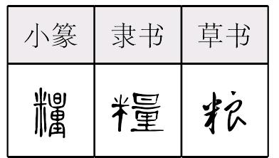 liánɡ糧,形声,从米,量声,本义为干粮,引申为粮食。先秦时期俗字、《手头字》、《简体字表》、《简化字表》简作“粮”,音符改为良。粮 糧; 篆 隶liáng【析形】形声字。小篆字形从米,量声。隶书字形变后或体作从米,良声。繁体字以“糧”为正体,今简化字以“粮”为正体。 【释义】《说文》:“谷也。”本义是出行路上带的干粮,与“食”相对。《周礼·廪人》:“凡邦有会同师役之事,则治其粮与其食。”郑玄注:“粮谓糒也,止居曰食,谓米也。”(糒:干粮)古代的干粮是炒熟的米麦等谷物,类似现在的炒米、炒豆,有时炒熟后再舂或碾成粉。大约自汉代后期起,粮才引申泛指粮食。[寅吃卯粮]按照干支,寅在卯前,寅年吃了来年卯年的粮食。比喻入不敷出,前吃后空。 【shape analysis】It is the pictophonetic character.In Small Seal script it was formed with the part 米(mǐ,rice) as an ideogram and the part 量(liáng) as a phonetic sign. When it was transformed into Official script, the variant form was formed with 米 and 良(liáng). 【original meaning】 The solid food prepared for a long journey which is relative to 食. In ancient times, it was made with rice and wheat, similar to dried rice and beans nowadays, or pestle and grind into powder after being cooked. |