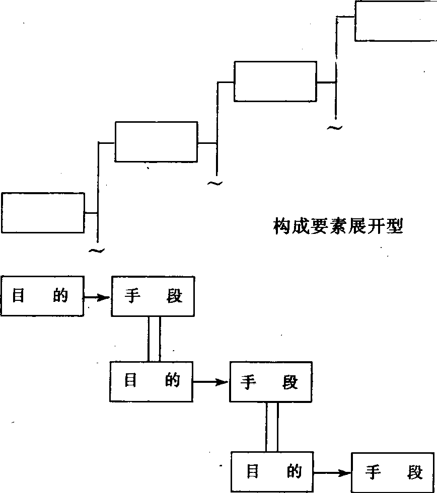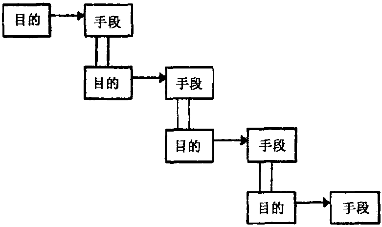 图9-13 系统示意图 制作系统图的步骤如下:(1)明确所要达到的目标,把最终目标简洁地表示出来,并记录在卡片上。(2)提出实现目标的方法和手段,既可从高到低展开,也可以相反,或根本不考虑级次而直接记录。总之,此阶段应注重发挥群体的智慧,集思广益,语言要简洁明了。(3)对方法、手段进行评价。以“○”表示可以实施的;以“△”表示未经调查不知是否可行的,对这类方法、手段应立即调查,尽快明确;以“*w”表示不能实施的。(4)制作卡片。把标有“○”的手段,用简洁准确的语言记录成卡片。(5)卡片系统化。把上述目的卡与手段卡按彼此目的一手段的有机联系进行排列,把最终目标放于最左侧,把实现手段排在其后,若不止一个可平行排列。然后再将这些手段看做目的,进一步排列要达到该目的的手段,如此逐层由高到低进行排列。若在过程中发现未曾给出的新方法、新手段还应补充进去。要仔细推敲不要有遗漏,这是系统图法中最重要的一个步骤。(6)确认手段是否能达到目的,这一步是将上一步作出的系统图从右向左倒推,逐级再确认该手段是否能实现目标。若是肯定则继续向左侧确认,若否定则需补充新手段和方法,直至能达到第一步骤所确定的目的、目标;(7)制定实施计划,即对每个手段的实施进行具体落实。 ☚ KJ法 矩阵图法 ☛ 系统图法 系统图法指运用系统图将欲达目的 (目标)所需的各种手段和措施进行整理,以掌握问题全貌,明确问题重点,找出实现欲达目标的最佳手段和措施。在系统图法中所用的系统图大致有两类: 一类是将构成问题 (研究对象) 的各要素按目的—手段关系展开的“构成要素展开型”; 另一类是将欲达目的所需采取的各种措施按系统展开的“措施展开型”。如下图所示: