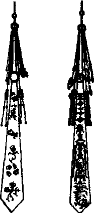 | 释义 | 綵帨清代满、汉贵妇官服佩饰。俗称“手巾”。自皇后至命妇穿官服时佩饰的长条巾。穿袍服系挂于衣襟上,穿朝服则系挂胸前。丝质为之,下端宽而尖,上绣各式纹饰。清制,后妃、命妇穿朝服时,所佩綵帨,依其颜色与纹饰辨等级,凡七级。平日后妃或命妇所佩綵帨,其纹饰无严格规定,多于其上彩绣万福喜寿字、五谷丰登、文房四宝、花蝶、灵芝、暗八仙等吉祥图案,色泽有月蓝、水蓝、茶褐、红诸色。祭大神、祭灶、万寿节等祭祀、喜庆节令均佩带之。
