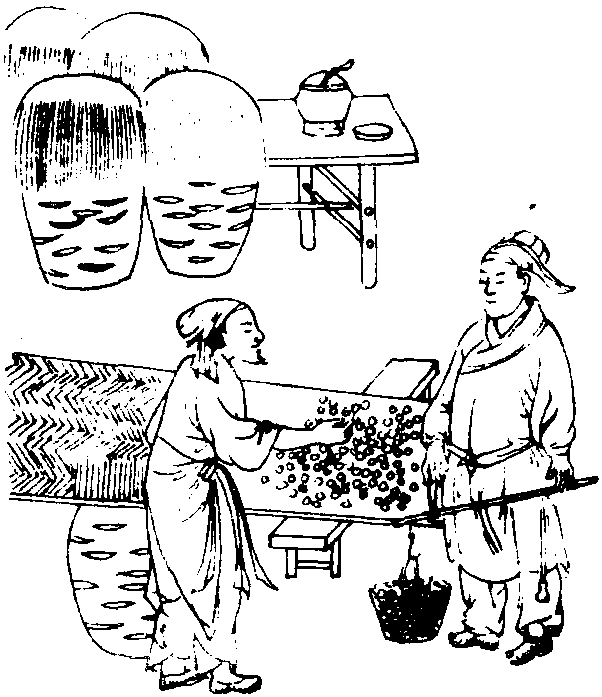 蒸繭器,籠狀,故稱。元·王禎《農書》卷二十:“繭籠,蒸繭器也。《農桑直説》云:‘用籠三扇,以軟草扎圈,加於釜口,以籠兩扇坐於其上,籠内匀鋪繭,厚三指許,頻於繭上以手試之,如手不禁熱,可取去底扇,却續添一扇在上,如此登倒上下,故必用籠也。不要蒸得過了,過則軟了絲頭;亦不要蒸得不及,不及則蠶必鑽了。如手不禁熱,恰得合宜,此用籠蒸繭法也。’”