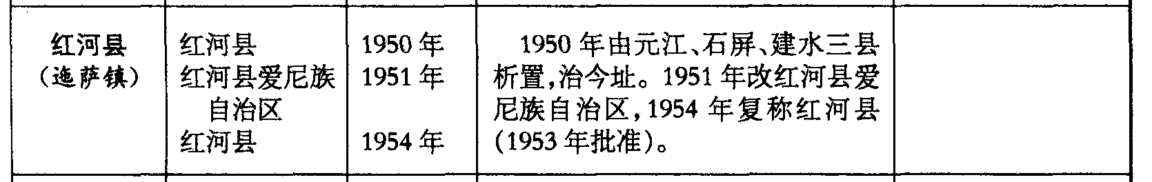 红河县(迤萨镇)红河县红河县爱尼族自治区红河县1950年1951年1954年1950年由元江、石屏、建水三县析置,治今址。1951年改红河县爱尼族自治区,1954年复称红河县(1953年批准)。