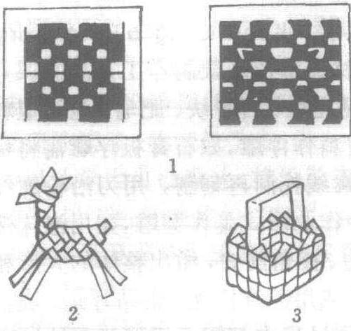 | 释义 | 纸条编织教学 纸条编织教学Zhitiaobianzhi jiaoxue在课堂教学中,教学生用纸条、以经纬编穿方法,编成方形图案、纸篓和小动物形象。条编工艺在生活实用品中常见,如竹筐、竹篮、草垫等,在课堂教学中这类材料如不易取得,可用纸条代替,其编穿方法基本相同,在编穿中让学生掌握条状材料经纬线隔行跳格的规律,还可以跳行数量的变化创作出丰富多采的图案纹样。