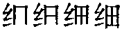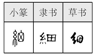 【提示】田中间的横,宋体与左右两边相接,楷体与左右两边相离。 *细(細)xì8画 糸部 (1) 微小(与“大”相对,可指具体的或抽象的事物): ~小|~沙|~枝末节|事无巨~。 (2) 微弱: ~声~气|和风~雨。 (3) 窄小;(长条的东西)周边到中心的距离小: ~绳|~竹竿|涓涓~流。 (4) 精致;精良: ~布|~巧|精~|~瓷茶碗。 (5) 周密;不粗疏: 详~|~~琢磨|深耕~作|胆大心~。 (6) 间谍;密探: ~作|奸~。 细細xì小篆和汉初形声字。从纟( mì,丝),囟(xìn,即囟脑门)声。韵变为阴阳对转,如斤祈旂(旗字的异体字)颀沂例。本义指微小的丝或指像丝一样微小。后来隶楷字的右旁一般讹成田字,如囟思例。看不出声旁了。微小,和“粗”相反,指颗粒小的。如:细沙|细末。有指长条东西直径小的。如:细竹竿。有指工料精致的。如:这瓷真细。有指声音小的。如:嗓音细|细声细气。有指周密的。如:胆大心细|精打细算|深耕细作。又指细小的,具体的。如:细节|详细。 细細★繁◎常★常