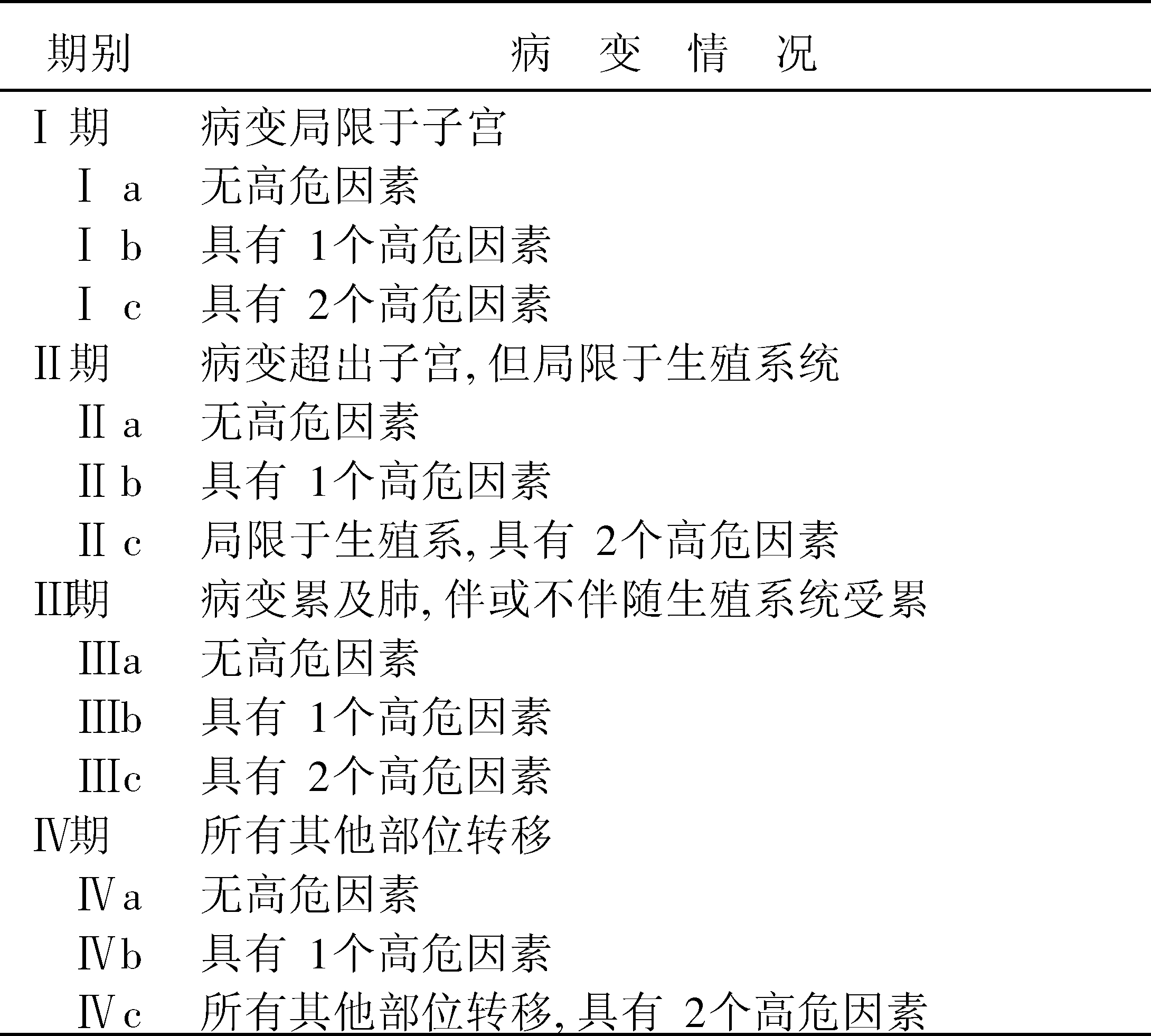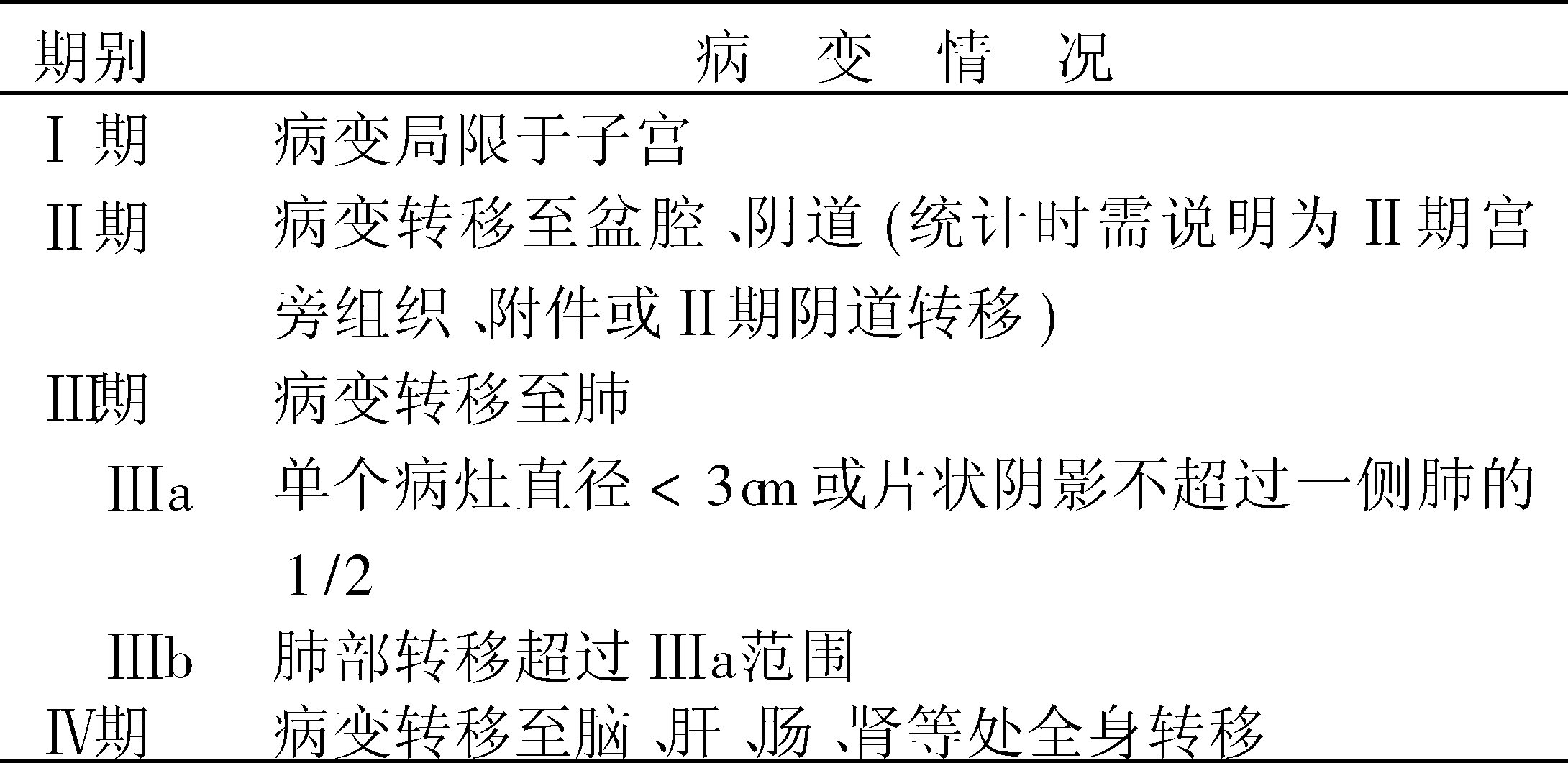 表2 侵蚀性葡萄胎和绒毛膜癌的国内分期法