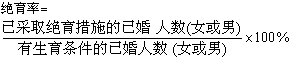 绝育率sterilization rate为计划生育的统计指标之一,表示在已婚有生育条件的育龄妇女中,已经采取绝育手术的妇女所占比例。计算公式为: